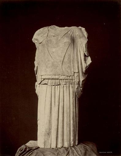 Keywords: Curtius Olympia 1 t10.jpg Figur der Mittelgruppe Ostgiebels des Zeustempels von Olympia Hippodameia oder Sterope Originaltext Hestia-Torso gefunden in zwei Stücken am 23 December 1875 und 4 Januar 1876 nahe dem Obertheil der Nike; H 1 80 M Der rechte Arm war aus einem anderen Stück angesetzt die hintere Seite ist unbearbeitet und wie zur Befestigung mit einer viereckigen Vertiefung versehen; vielleicht gruppiert mit dem folgenden Torso eines Kolosses Sculpture from the east pediment of the Temple of Zeus in Olympia either Hippodamia or Sterope Ernst Curtius Hg Die Ausgrabungen zu Olympia Band 1 à bersicht der Arbeiten und Funde vom Winter und Frühjahr 1875 “1876 Berlin 1876 http //diglit ub uni-heidelberg de/diglit/curtius1876bd1/0030 Digitalisat der Universitätsbibliothek Heidelberg 1875/1876 Gebr Romaïdis Patras 100px 3/4 PD-old Temple of Zeus in Olympia - Pediments 1875/1876 excavations in Olympia Hestia |