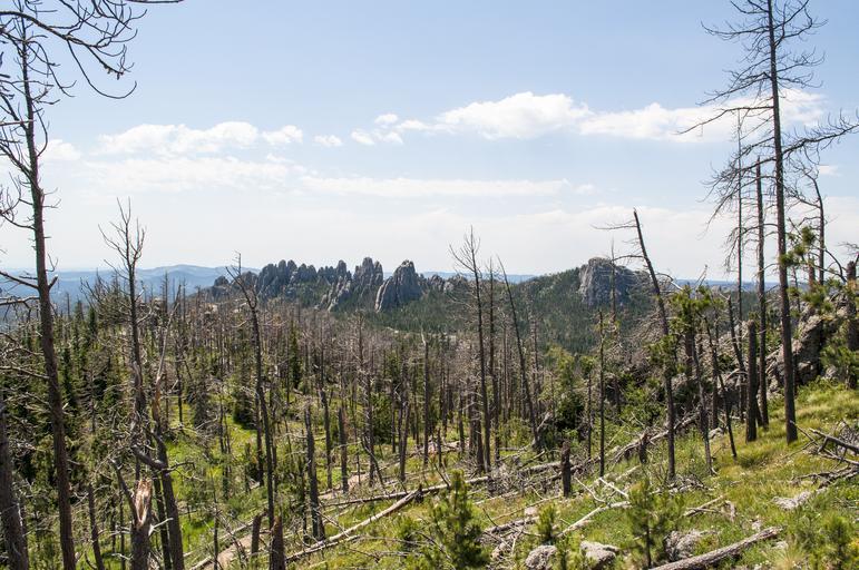 Keywords: custer state park landscape panorama scenic dakota state custer park mountains erosion panoramic geology burned forest forest fire hiking granite