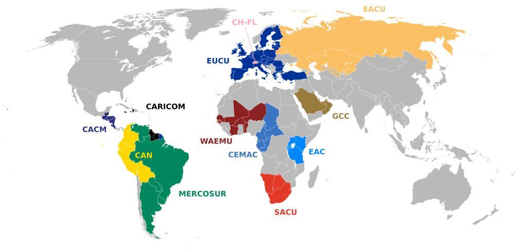 | Keywords: Customs Unions World.svg Actual Customs unions in the world 003399 European Union Customs Union EUCU FBBF64 Eurasian Customs Union EACU 0087FF East African Community EAC 8C2121 West African Economic and Monetary Union WAEMU E23828 Southern African Customs Union SACU 3A75C4 Communauté Économique et Monétaire de l'Afrique Centrale CEMAC 00875D Mercosur FFD700 Andean Community CAN 000000 Caribbean Community CARICOM 2D3182 Central American Common Market CACM 997B3C Gulf Cooperation Council GCC FFA7B4 Switzerland ” Liechtenstein CH-FL Data from http //www wto org/english/tratop_e/region_e/eif_e xls WTO List</br> SVG recreation of PNG picture see below 2015-03-28 Emilfaro Derivative work Master Uegly Master Uegly Customs unions png Maps of international organizations World Trade Organization Caricom 2008 maps Maps of Mercosul West African Economic and Monetary Union Economic and Monetary Community of Central Africa East African Community Southern African Customs Union Map of the GCC countries Eurasian Economic Community |