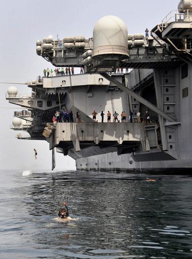 | Keywords: CVN-70-120323-N-OK922-139 ARABIAN SEA (March 23, 2012) Sailors jump off aircraft elevator No. 4 uring a swim call aboard the Nimitz-class aircraft carrier USS Carl Vinson (CVN 70).JPG en 120323-N-OK922-139 ARABIAN SEA March 23 2012 Sailors jump off aircraft elevator No 4 during a swim call aboard the Nimitz-class aircraft carrier USS Carl Vinson CVN 70 Carl Vinson and Carrier Air Wing CVW 17 are deployed to the U S 5th Fleet area of responsibility U S Navy photo by Mass Communication Specialist 3rd Class Rosa A Arzola/Released ru В цент е опущенный элевато 4 вве ху на пе еднем плане «палец» небольшой участок палубы в ко му от 4-го элевато а с консольно зак еплённой на нём площадкой для ада а 2012-03-23 http //www navy mil/view_image asp id 120128 U S Navy photo by Mass Communication Specialist 2nd Class James R Evans/Released PD-USGov Uploaded with UploadWizard Aboard USS Carl Vinson CVN-70 |