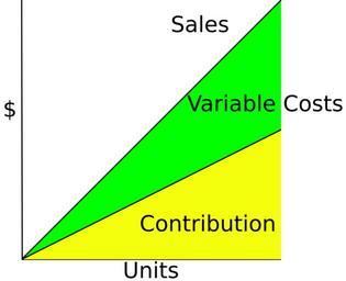| Keywords: CVP-Sales-Contrib-VC.svg Cost-Volume-Profit diagram showing break down of Sales into Contribution and Variable Costs Self-made in Inkscape Created with Inkscape 2008-02-03 Nils R Barth Translation possible Accounting Cost and revenue curves |