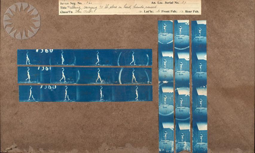 | Keywords: photography physics inventors muybridge smithsonian probably public domain probablypublicdomain SI Neg. 2004-41215. Date: na....Title: "Walking, carrying 75 lb. stone on head, hands raised.".Cyanotype proofs of man walking..Series Neg. No. 1360.An. Loc. Serial No. 27.Classification: Men nude.Muybridge's cyanotypes are working proofs, the contact prints he made from more than 20,000 negatives he took at the University of Pennsylvania between 1884 and 1886 while photographing human and animal subjects in motion from lateral (parallel), front and rear positions. Since the original negatives no longer exist, the cyanotypes provide us with the opportunity to see the pictures Muybridge achieved before he edited and cropped them for publication..From the Photographic History Collection, National Museum of American History...Credit: Eadweard Muybridge (Smithsonian Institution) SI Neg. 2004-41215. Date: na....Title: "Walking, carrying 75 lb. stone on head, hands raised.".Cyanotype proofs of man walking..Series Neg. No. 1360.An. Loc. Serial No. 27.Classification: Men nude.Muybridge's cyanotypes are working proofs, the contact prints he made from more than 20,000 negatives he took at the University of Pennsylvania between 1884 and 1886 while photographing human and animal subjects in motion from lateral (parallel), front and rear positions. Since the original negatives no longer exist, the cyanotypes provide us with the opportunity to see the pictures Muybridge achieved before he edited and cropped them for publication..From the Photographic History Collection, National Museum of American History...Credit: Eadweard Muybridge (Smithsonian Institution) |