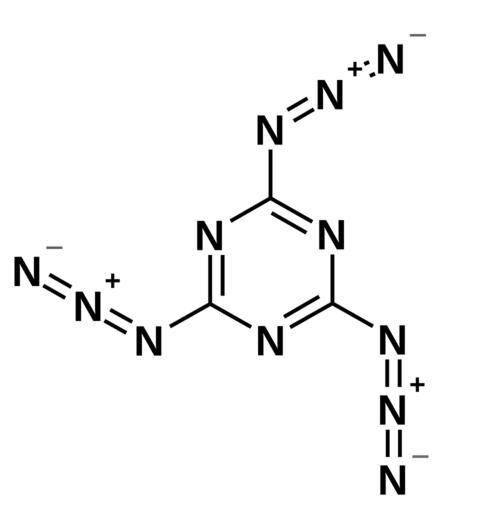 Keywords: Cyanuric triazide structure.svg en Cyanuric triazide de Cyanurtriazid fr Triazide cyanurique own Steffen 962 2011-01-03 PD-chem Cc-zero Cyanuric triazide Triazines