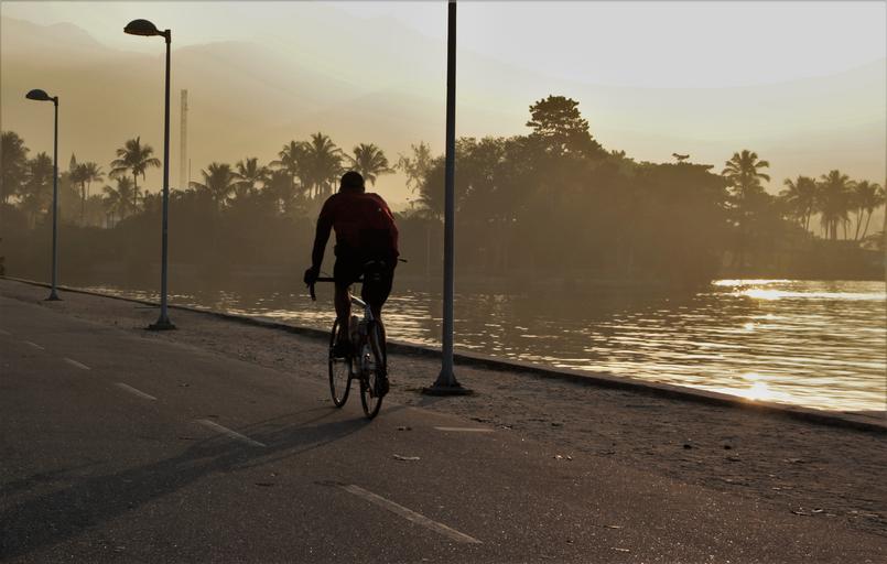 Keywords: cycling light exercise pond shadows bike eventide sport energy reflections perspective