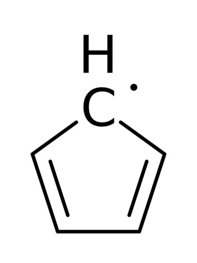 Keywords: Cyclopentadienyl.svg Chemical structure of cyclopentadienyl radical Own 21 49 13 July 2016 UTC Ed Edgar181 Radicals Cyclopentadiene derivatives