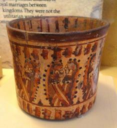 | Keywords: Cylindrical Vase with Figures, Late Classic Mayan, Ulua Valley, Honduras - San Diego Museum of Man - DSC06831.JPG en Exhibit in the San Diego Museum of Man San Diego California USA This artwork is old enough so that it is in the public domain Photography was permitted in the museum without restriction 2013-02-24 18 48 01 own Daderot cc-zero Maya ceramics in the San Diego Museum of Man Uploaded with UploadWizard Maya cylinder vases UlĂșa Valley pottery | ||||