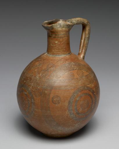 Keywords: Cypriote - Black-on-Red Ware Jug with Geometric Design - Walters 482341 - Three Quarter Left.jpg Small and portable these jugs have been found throughout the lands surrounding Cyprus Called Black-on-Red Ware this attractive ceramic type comprises mostly small jugs The red-brown slip has a polished lustrous surface with simple geometric designs painted in black The decoration of this pottery follows the circle style of the Bichrome Ware jugs century 7 BC terracotta cm 21 accession number 48 2341 2957 William H Smith Alexandria VA Walters Art Museum 1973 by purchase Museum purchase with funds provided by the S A P Fund 1973 place of origin Cyprus Walters Art Museum license Ancient Greek pottery in the Walters Art Museum Ancient Cyprus Media contributed by the Walters Art Museum needs category review Objects on gray background |