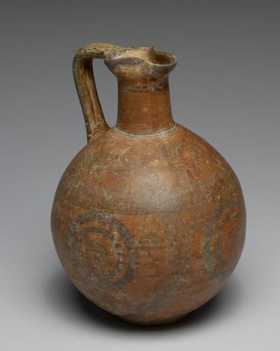 Keywords: Cypriote - Black-on-Red Ware Jug with Geometric Design - Walters 482341 - Three Quarter Right.jpg Small and portable these jugs have been found throughout the lands surrounding Cyprus Called Black-on-Red Ware this attractive ceramic type comprises mostly small jugs The red-brown slip has a polished lustrous surface with simple geometric designs painted in black The decoration of this pottery follows the circle style of the Bichrome Ware jugs century 7 BC terracotta cm 21 accession number 48 2341 2957 William H Smith Alexandria VA Walters Art Museum 1973 by purchase Museum purchase with funds provided by the S A P Fund 1973 place of origin Cyprus Walters Art Museum license Ancient Greek pottery in the Walters Art Museum Ancient Cyprus Media contributed by the Walters Art Museum needs category review Objects on gray background |