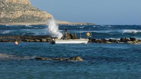Keywords: cyprus ayia napa kermia beach boat waves smashing windy fishing shelter
