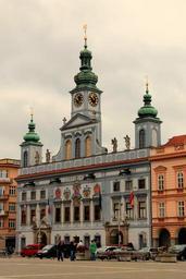 Keywords: czech budejovice south bohemia old building city building bohemia budějovice city center blue hall clock square architecture