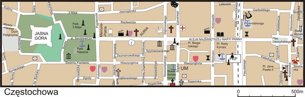 Keywords: CzÄ™stochowa-mapa-centrum.png <table width 100 border 1 > <tr> <td colspan 2 > <div align center ><u>Legenda</u></div> </td> </tr> <tr> <td colspan 2 height 24 > <div align center ><b>Ogólne</b></div> </td> </tr> <tr> <td>24px</td> <td>zabudowania</td> </tr> <tr> <td>24px</td> <td>parki skwery</td> </tr> <tr> <td>24px</td> <td>łąki</td> </tr> <tr> <td colspan 2 > <div align center ><b>Kultura</b></div> </td> </tr> <tr> <td>24px</td> <td>ważniejsze galerie <br> Miejska Galeria Sztuki - al NMP</td> </tr> <tr> <td>24px</td> <td>ważniejsze oÅ›rodki promocji kultury <br> OÅ›rodek Promocji Kultury žGaude Mater - ul DÄ…browskiego</td> </tr> <tr> <td>24px</td> <td> <p>kina <br> OÅ›rodek Kultury Filmowej - al NMP<br> Cinema City žWolność - al T KoÅ›ciuszki</p> </td> </tr> <tr> <td>24px</td> <td>teatry <br> Teatr Dramatyczny im A Mickiewicza - róg ul ul Jasnogórskiej i J KiliÅ„skiego</td> </tr> <tr> <td>24px</td> <td>filharmonie <br> Filharmonia CzÄ™stochowska - róg ul ul T W Wilsona i G Garibaldiego</td> </tr> <tr> <td colspan 2 > <div align center ><b>Edukacja</b></div> </td> </tr> <tr> <td>24px </td> <td>szkoÅ‚y Å›rednie <br> Liceum Plastyczne im J Malczewskiego - ul K PuÅ‚askiego<br> IV LO im H Sienkiwicza - al NMP<br> I LO im J SÅ‚owackiego - al T KoÅ›ciuszki<br> V LO im A Mickiewicza - ul Krakowska<br> Zespół Szkół Elektroniczno-Mechanicznych - na wschód od archikatedry faktycznie ul Targowa </td> </tr> <tr> <td>24px </td> <td>szkoÅ‚y wyższe <br> Akademia Polonijna - róg ul ul Siedmiu Kamienic i PuÅ‚askiego<br> Akademia Jana DÅ‚ugosza - ul J Waszyngtona</td> </tr> <tr> <td>24px </td> <td>muzea <br> Muzeum CzÄ™stochowskie - wszystkie obiekty zaznaczone</td> </tr> <tr> <td>24px </td> <td>biblioteki pominiÄ™to filie <br> Biblioteka Miejska - al NMP</td> </tr> <tr> <td>24px </td> <td>inne jednostki <br> obserwatorium astronomiczne - Park St Staszica</td> </tr> <tr> <td colspan 2 > <div align center ><b>Turystyka</b></div> </td> </tr> <tr> <td>24px</td> <td>informacja turystyczna <br> punkt informacji turystycznej UrzÄ™du Miasta - al NMP</td> </tr> <tr> <td>24px</td> <td>zabytkowe koÅ›cioÅ‚y rzymskokatolickie <br> pw NajÅ›wiÄ™tszego Imienia Maryi - al NMP koÅ‚o LO Sienkiewicza<br> pw Å›w Jakuba - otoczony al NMP i ul ul J H DÄ…browskiego RacÅ‚awickÄ… KiliÅ„skiego<br> pw Å›w Zygmunta - pl I DaszyÅ„skiego<br> Archikatedra pw ÅšwiÄ™tej Rodziny - pl Jana PawÅ‚a II ul ul Krakowska i Ogrodowa</td> </tr> <tr> <td>24px</td> <td>koÅ›cioÅ‚y rzymskokatolickie</td> </tr> <tr> <td>24px</td> <td>kaplice</td> </tr> <tr> <td>24px</td> <td>cerkwie</td> </tr> <tr> <td>24px</td> <td>zabytkowe koÅ›cioÅ‚y protestanckie <br> pw WniebowstÄ…pienia PaÅ„skiego ewengelicko-augsburski - ul M Kopernika </td> </tr> <tr> <td>24px</td> <td>pomniki</td> </tr> <tr> <td>24px</td> <td>Miejsca PamiÄ™ci Narodowej</td> </tr> <tr> <td>24px</td> <td>inne atrakcje turystyczne <br> Dom BiegaÅ„skiego - vis-à -vis stacji PKP<br> Dom Frankego - al NMP</td> </tr> <tr> <td colspan 2 > <div align center ><b>Varia</b></div> </td> </tr> <tr> <td>24px</td> <td>Stacje pogotowia ratunkowego <br> Stacja Pogotowia Ratunkowego - ul J KiliÅ„skiego</td> </tr> <tr> <td>24px</td> <td>jednostki Straży Pożarnej</td> </tr> <tr> <td>24px</td> <td>urzÄ™dy pocztowe</td> </tr> <tr> <td>24px</td> <td>fontanny</td> </tr> <td colspan 2 > <div align center ><b>Skróty literowe</b></div> </td> </tr> <tr> <td>UM</td> <td>UrzÄ…d Miasta</td> </tr> <tr> <td>PKP</td> <td>stacja PKP CzÄ™stochowa Osobowa</td> </tr> </table> own Reytan Reytan Maps of CzÄ™stochowa |