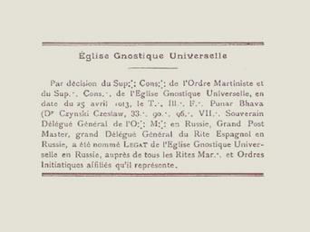 Keywords: Czy1.jpg О дена ма тинистов и Ве ховного Совета Гностической Католической це кви 25 ап еля 1913 года Высокоп освещенный Б ат Пуна Бхава Чинский Чеслав 33 90 96 VII Де жавный гене альный п едставитель О дена ма тинистов в России Великий Смот итель и великий Гене альный п едставитель Испанского устава в России назначается Посланником Гностической Католической це кви в России и п едставителем а тинистского устава и одственных последнему посвятительных о денов 1913 http //oto ru/cgi-bin/article pl articles/order/history/prinke txt < Жу нал ма тинистов гностических це квей O T O и д Mysteria II 1 6 Па иж июнь 1913 г ст 191 жу нал Mysteria PD-Art Uploaded with UploadWizard Czeslaw Czynski Ordo Templi Orientis Misteria magazine