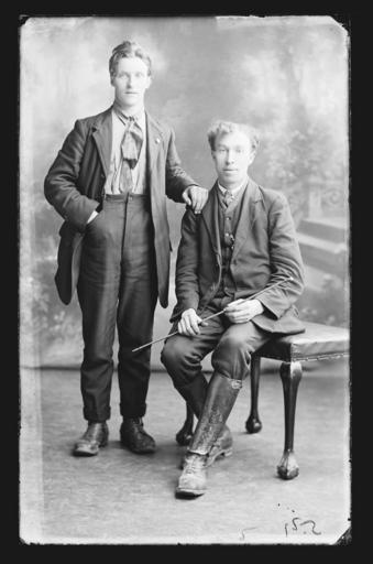 Keywords: proni cooper h.f. cooper hfcooper family family portrait familyportrait genealogy ancestry ulster strabane northern ireland northernireland county tyrone countytyrone lifford county donegal countydonegal two men pocket boots standing seated crop blackandwhite groupshot people monochrome photo border black and white Creator: H.F. Cooper Photographer, Strabane Date: c.1915 Original Format: Glass Plate Negative Description: Portrait of two men - one standing and one seated wearing riding boots and holding a crop. PRONI Ref: D1422/B76292/L/5 Copying and copyright: Please see www.proni.gov.uk/index/research_and_records_held/copying_... For Copy Orders, contact: Email: proni@dcalni.gov.uk For fees and charges see: www.proni.gov.uk/index/about_proni/are_there_any_fees_and... Creator: H.F. Cooper Photographer, Strabane Date: c.1915 Original Format: Glass Plate Negative Description: Portrait of two men - one standing and one seated wearing riding boots and holding a crop. PRONI Ref: D1422/B76292/L/5 Copying and copyright: Please see www.proni.gov.uk/index/research_and_records_held/copying_... For Copy Orders, contact: Email: proni@dcalni.gov.uk For fees and charges see: www.proni.gov.uk/index/about_proni/are_there_any_fees_and... |