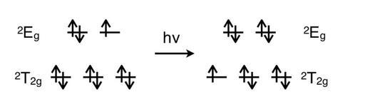 Keywords: D9 electronic excitation diagram.png Excitation of an octahedral d9 electron configuration Drawn by the author 2009-12 Chem507f091 de English Wikipedia Chem507f091 Coordination chemistry
