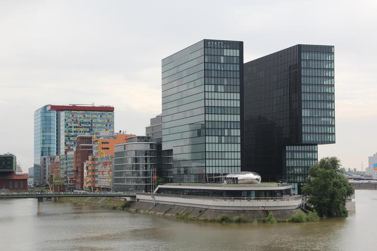 Keywords: düsseldorf port architecture building media harbour rhine modern city view