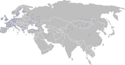 Keywords: D sylvestris distribution.png en This image of eurasia contains dots that represent distribution of the wasp Dolichovespula sylvestris 2014-11-12 Distribution was added to eurasia map on wikicommons based on information from the article Taxonomy and World Distribution of the Euro-Asian species of Dolichovespula Hym Vespinae by Michael E Archer from the Entomologists's Monthly Magazine July 1999 ashleyearley Harbin other versions Custom license marker 2014 11 13 Harbin Uploaded with UploadWizard Dolichovespula sylvestris |