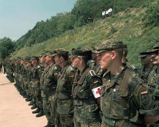 | Keywords: DA-SD-03-00283 German Engineers (IFOR) in Bosnia near Gorazde as part of Operation Joint Endeavor.jpeg Local identifier 330-CFD-DA-SD-03-00283 Department of Defense American Forces Information Service Defense Visual Information Center 1994 - SGT Jean-Marc Schaible USA Still Picture Records Section Special Media Archives Services Division NWCS-S National Archives at College Park 8601 Adelphi Road College Park MD 20740-6001 06/04/1996 Record group Records of the Office of the Secretary of Defense 1921 - 2008 Record group ARC 330 Combined Military Service Digital Photographic Files compiled 1982 - 2007 documenting the period ca 1786 - 2007 Series ARC 6274097 Variant control numbers General notes Scope and content The Donji Bratinia Bridge just north of the city of Gorazde is re-opened after having been shut down after its' destruction by North Atlantic Treaty Organization air strikes The new bridge is a British Mabey Johnson bridge assembled by a Battalion of German Engineers belonging and supporting the Implementation Force IFOR in Bosnia as part of Operation JOINT ENDEAVOR Lieutenant General Michael Walker Commander of the Allied Command Europe Rapid Reaction Corps with the assistance of a Bosnian interpreter and a German interpreter speaks to the German Army Engineers and the local Bosnian population gathered there to witness the official opening ceremony Beginning in December 1995 US and allied nations deployed peacekeeping forces to Bosnia in support of JOINT ENDEAVOR The provision of a secure environment is at the heart of the reconstruction effort in Bosnia File unit File unit ARC NARA-cooperation PD-USGov Germany in the 1998-2004 war in Bosnia and Herzegovina Goražde IFOR Operation Joint Endeavor |