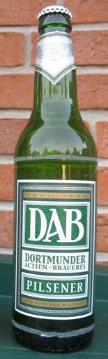 Keywords: DAB Pilsener.jpg en A bottle of DAB pilsener own Miguel Andrade 2010-11-11 Beer bottles green glass Dortmunder Actien-Brauerei
