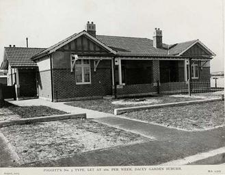 Keywords: archives state records nsw staterecordsnsw newsouthwales blackandwhite daceyville suburb garden suburb gardensuburb sydney houses federation style federationstyle public housing publichousing outdoor building architecture black and white Foggit's No.3 Type let at 16s [shillings] per week, Dacey Garden suburb Dated: 1913 Digital ID: 5225_a018_a018000029 Rights: www.records.nsw.gov.au/about-us/rights-and-permissions We'd love to hear from you if you use our photos. From a series of photographs of 'Dacey Garden Suburb' (Daceyville) - a development by the Housing Board of NSW as Sydney's "first planned modern garden suburb". Daceyville was developed between 1913 and 1918 and is located in south-eastern Sydney within the municipalities of Mascot and Botany. The images in the series show scenes of the area before development, road building, the types of houses built, shops, as well as the Public School. The suburb was named after the state parliamentarian John Rowland Dacey who played a vital role in the approval of this urban development. Many other photos in our collection are available to view and browse on our website using Photo Investigator. Foggit's No.3 Type let at 16s [shillings] per week, Dacey Garden suburb Dated: 1913 Digital ID: 5225_a018_a018000029 Rights: www.records.nsw.gov.au/about-us/rights-and-permissions We'd love to hear from you if you use our photos. From a series of photographs of 'Dacey Garden Suburb' (Daceyville) - a development by the Housing Board of NSW as Sydney's "first planned modern garden suburb". Daceyville was developed between 1913 and 1918 and is located in south-eastern Sydney within the municipalities of Mascot and Botany. The images in the series show scenes of the area before development, road building, the types of houses built, shops, as well as the Public School. The suburb was named after the state parliamentarian John Rowland Dacey who played a vital role in the approval of this urban development. Many other photos in our collection are available to view and browse on our website using Photo Investigator. |