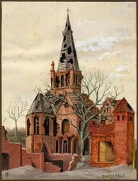 | Keywords: university of victoria universityofvictoria uvic great britain. army. royal regiment of artillery greatbritainarmyroyalregimentofartillery caricatures and cartoons--20th century caricaturesandcartoons20thcentury notebooks war artists warartists world war, 1914-1918--pictorial works worldwar19141918pictorialworks world war, 1914-1918--caricatures and cartoons worldwar19141918caricaturesandcartoons building architecture outdoor photo border Item is one of 123 pen-and-ink drawings and watercolours from two volumes titled: "Sketches of the War: France/Belgium". The sketches vary from satirical cartoons to more detailed and naturalistic renditions. They are often accompanied by an ironic title and are often signed with the artist's initials, "J.M." The artist's satirical targets include the officers and high command of both combatant sides; the disjuncture between reported and actual events, and the death of civilians as a fact of modern warfare. Item is one of 123 pen-and-ink drawings and watercolours from two volumes titled: "Sketches of the War: France/Belgium". The sketches vary from satirical cartoons to more detailed and naturalistic renditions. They are often accompanied by an ironic title and are often signed with the artist's initials, "J.M." The artist's satirical targets include the officers and high command of both combatant sides; the disjuncture between reported and actual events, and the death of civilians as a fact of modern warfare. |