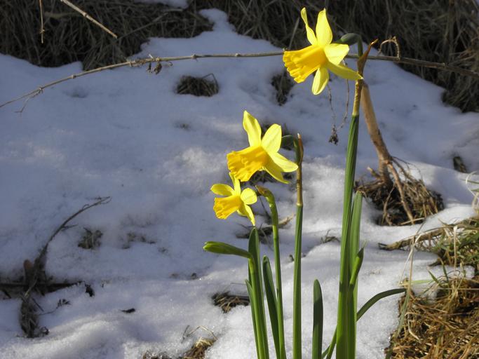 Keywords: daffodil flower fruhblueher yellow snow spring earlier