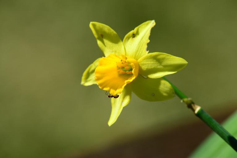 Keywords: daffodil narcissus pseudonarcissus ant insects flower yellow garden close-up macro