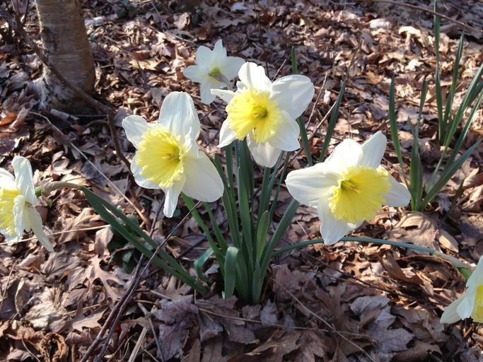 Keywords: daffodils flower yellow white spring floral blossom season narcissus bright springtime seasonal blooming flora macro