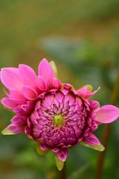 Keywords: dahlia blossom bloom flower pink dahlia garden garden plant late summer flower garden wet rain drip moist close bud awakening