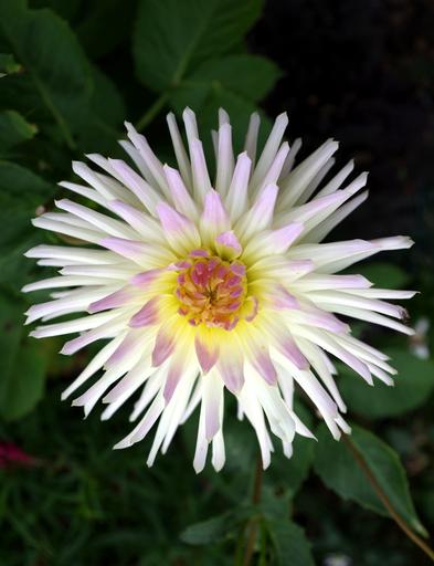 Keywords: dahlia flower floral bloom macro nature pink garden summer plant petals botany horticulture spikes ornamental decorative botanical outdoors head