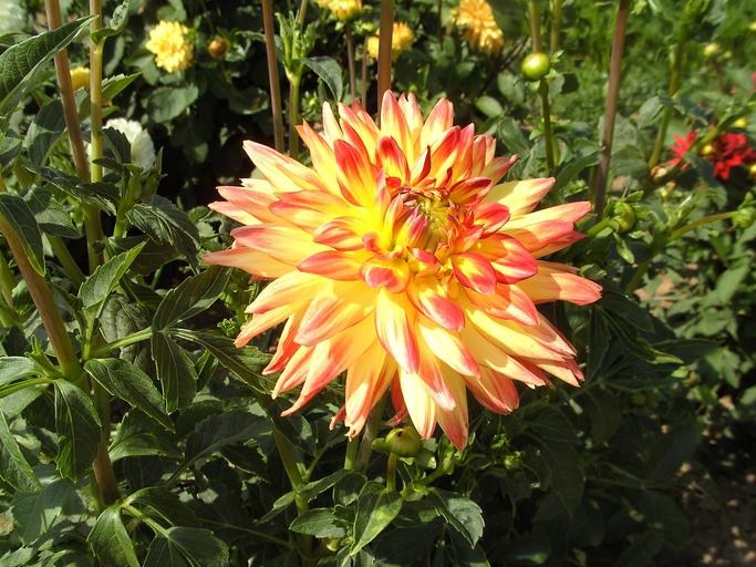 Keywords: dahlia garden blossom bloom flower plant nature summer yellow orange