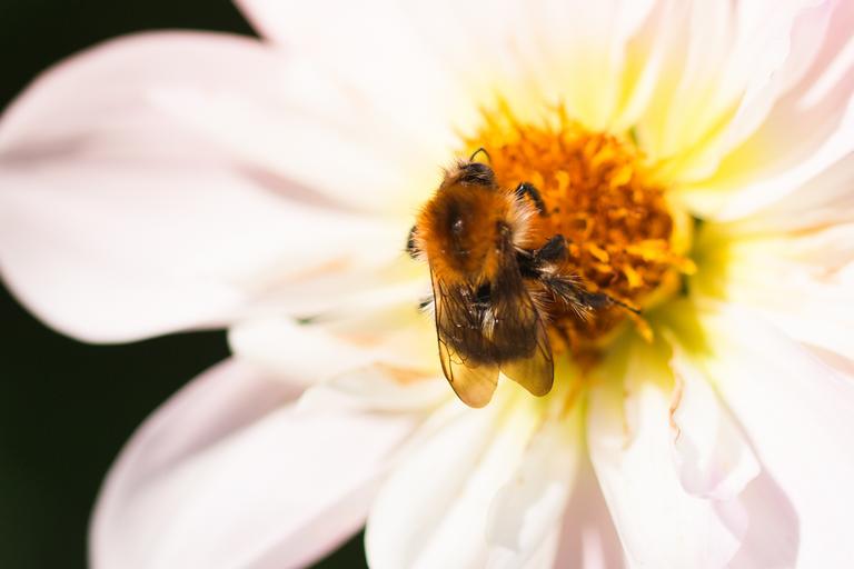 Keywords: dahlia hortensis hummel blossom bloom macro insect flower animal close dahlia neck frills-dahlia