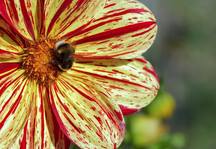Keywords: dahlia yellow flower blossom bloom dahlia garden red plant macro nature late summer garden garden plant close yellow red hummel nectar red yellow schnittblume bright color pattern course background structure colorful