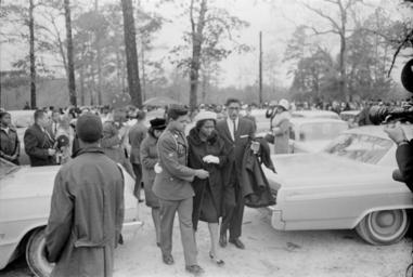 Keywords: ms-dept-archives-history msdeptarchiveshistory moncrief mdah:sysid=94908 murder civil rights civilrights blackandwhite monochrome outdoor black and white Collection: Moncrief Photograph Collection Call number: PI/1994.0005 System ID: 94908. Link to the catalog Vernon Dahmer funeral, Shady Grove Baptist Church, Kelly Settlement (Hattiesburg, Miss.), afternoon of January 15, 1966. Ellie Dahmer, widow of slain civil rights leader Vernon Dahmer, assisted to car by family members. Scanned as TIFF in 2005-06-27 by MDAH. Credit: Courtesy of the Mississippi Department of Archives and History. Collection: Moncrief Photograph Collection Call number: PI/1994.0005 System ID: 94908. Link to the catalog Vernon Dahmer funeral, Shady Grove Baptist Church, Kelly Settlement (Hattiesburg, Miss.), afternoon of January 15, 1966. Ellie Dahmer, widow of slain civil rights leader Vernon Dahmer, assisted to car by family members. Scanned as TIFF in 2005-06-27 by MDAH. Credit: Courtesy of the Mississippi Department of Archives and History.