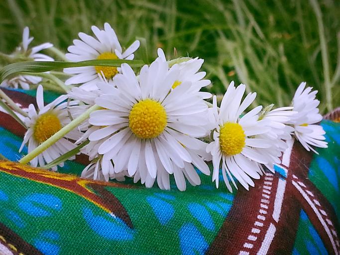 Keywords: daisies flowers nature petal grass spring white flowering stamen macro green park
