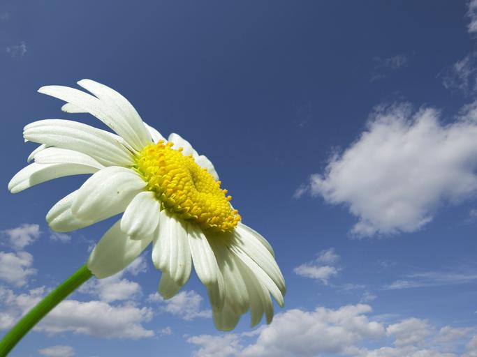 Keywords: daisy flower white yellow nature summer floral beautiful plant blossom bloom meadow macro sky close-up bright detail