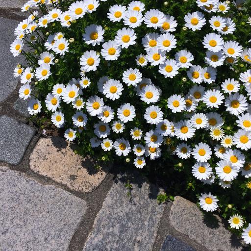 Keywords: daisy margaret flower bed flowers white chrysanthemum green many cute fragrance aroma yokosuka kanagawa japan otsu park antomasako flowering pistil stamen yellow pure white meek pretty small paving stones