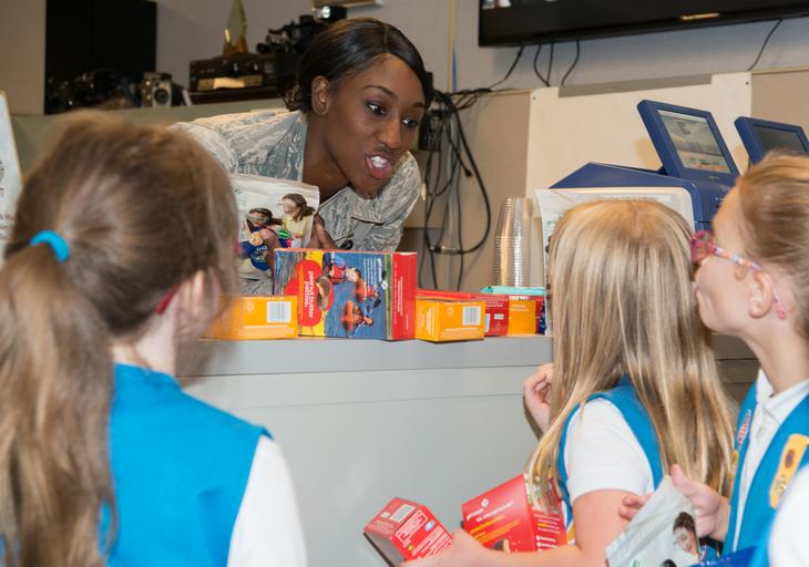 | Keywords: girl scouts girlscouts people indoor Girl Scout Daisy Troop 3390 hosted a "Troops to Troops," cookie delivery event. The group delivered 200 boxes of cookies to Airmen of the 136th Airlift Wing, August 27, 2016, Naval Air Station Fort Worth Joint Reserve Base, Texas. Girl Scout Daisy Troop 3390 hosted a "Troops to Troops," cookie delivery event. The group delivered 200 boxes of cookies to Airmen of the 136th Airlift Wing, August 27, 2016, Naval Air Station Fort Worth Joint Reserve Base, Texas. |