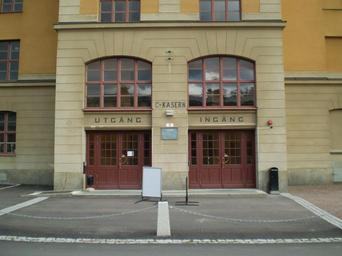 Keywords: Dalregementet entré C.JPG sv Entré till C-kasernen vid Dalregementet i Falun Kasernen huserade Livkompaniet Orsa kompani och Mora kompani own Joshua06 2010-05-06 Dalregementet Falun