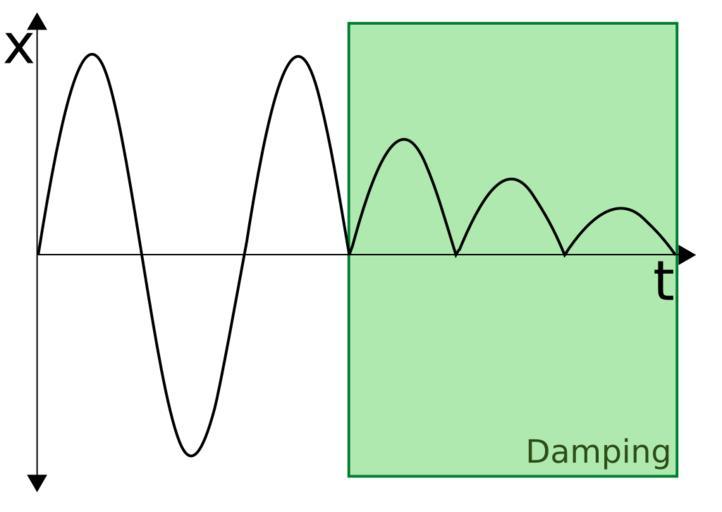 Keywords: Damping block graph.svg en Graph of the displacement of a pendulum in simple harmonic oscillation before and during damping due to partially inelastic collisions with a block placed at the equilibrium position Own Sjlegg 2009-05-12 Mechanical vibrations |