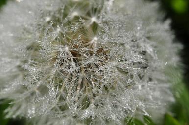 Keywords: dandelion drip wet raindrop dew white dewdrop morgentau drop of water droplets macro close