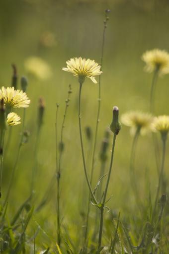 Keywords: dandelion false dandelion wildflowers green yellow nature flowers wild meadow petals macro soft field botanical