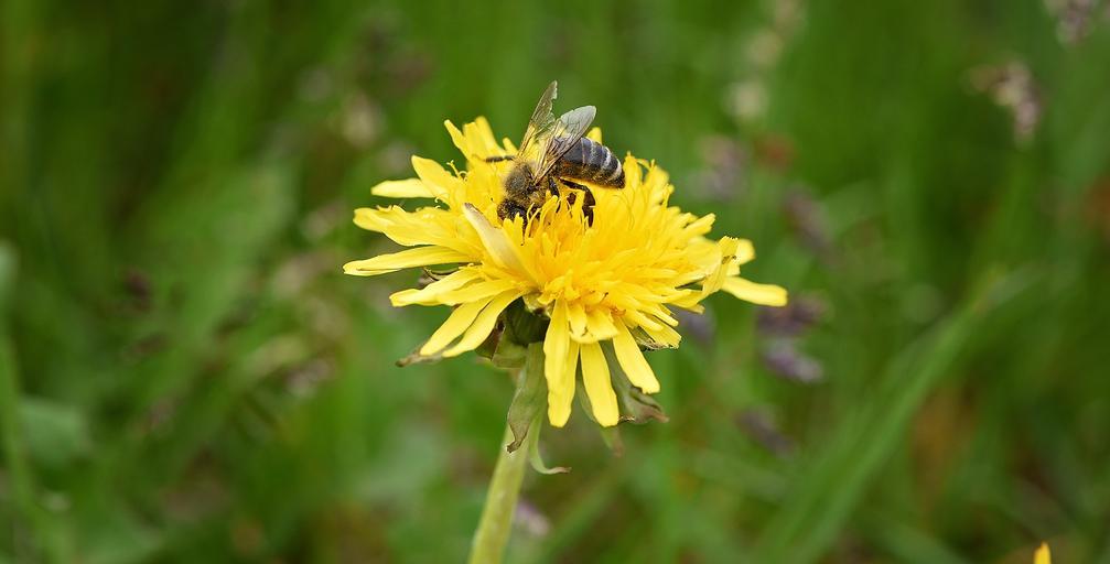 Keywords: dandelion flower yellow pointed flower meadow bee insect close