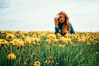 Keywords: dandelion nature greens yellow living nature a yellow flower summer flowers closeup common dandelion meadow grass sun winter cress girl model portrait blonde beautiful positive