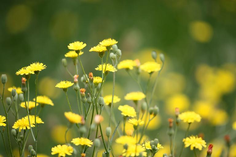 Keywords: dandelions weeds lawn flowers green yellow spring summer depth of field bokeh