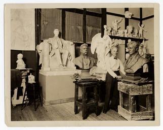 Keywords: smithsonian institution smithsonianinstitution daniel chester french danielchesterfrench american sculptor stockbridge, mass stockbridgemass studio lincoln memorial lincolnmemorial sons of god sonsofgod washington irving washingtonirving george westinghouse georgewestinghouse the sons of god saw the daughters of men that they were fair thesonsofgodsawthedaughtersofmenthattheywerefair artist bowtie 1920 sculpture busts abraham lincoln abrahamlincoln collection curator lincoln roosevelt statue stone bust window scuptures archives of american art archivesofamericanart monochrome Description: Identification on verso (typewritten): Daniel Chester French, foremost American sculptor, in his studio at Stockbridge, Mass., showing the plaster models of the Lincoln Memorial at Washington; the Sons of God, in the Corcoran Gallery, Washington; and some of his latest works still in clay, including the best [sic] of George Westinghouse which will be exhibited at the Stockbridge (Mass.) Art Exhibition, to be opened August 29th. French, Daniel Chester, 1850-1931 Creator/Photographer: Unidentified photographer Medium: Black and white photographic print Dimensions: 20 cm x 26 cm Date: c. 1920 Persistent URL: www.aaa.si.edu/collections/images/detail/daniel-chester-f... Repository: Archives of American Art Collection: Forbes Watson Papers, 1900-1950 Accession number: aaa_watsforb_3565 Description: Identification on verso (typewritten): Daniel Chester French, foremost American sculptor, in his studio at Stockbridge, Mass., showing the plaster models of the Lincoln Memorial at Washington; the Sons of God, in the Corcoran Gallery, Washington; and some of his latest works still in clay, including the best [sic] of George Westinghouse which will be exhibited at the Stockbridge (Mass.) Art Exhibition, to be opened August 29th. French, Daniel Chester, 1850-1931 Creator/Photographer: Unidentified photographer Medium: Black and white photographic print Dimensions: 20 cm x 26 cm Date: c. 1920 Persistent URL: www.aaa.si.edu/collections/images/detail/daniel-chester-f... Repository: Archives of American Art Collection: Forbes Watson Papers, 1900-1950 Accession number: aaa_watsforb_3565