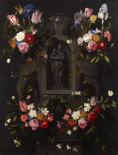 | Keywords: Daniel Seghers - Floral Garland with Mother and Child 3830.jpeg  en Floral Garland with Mother and Child http //www colnaghi co uk/paintings/dutch-flemish oil on canvas 123 5 cm x 94 cm 1646 Flowers Creator Daniel Seghers Grisaille Creator Erasmus Quellinus II or Creator Abraham van Diepenbeeck D Seghers Soctis JESU 1646 Shown by Colnaghi at TEFAF 2015 PD-Art-100 Garland paintings by Daniƫl Seghers Art works shown at TEFAF 2015 1646 paintings Niches in art Grisaille Paintings with inscriptions 17th-century paintings location missing |