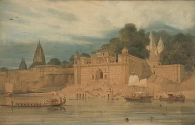 | Keywords: Daniell Benares.jpg  Shivala Ghat Benares Varanasi http //www bl uk/onlinegallery/onlineex/mapsviews/benares 1790 Creator Thomas Daniell Thomas Daniell Ghats in Varanasi in art Ganges River in Varanasi 1790 in India Boats on Ganges River in Varanasi 1790 paintings PD-old-100 |