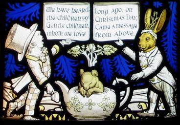 MAKE A MEME View Large Image Daresbury window 3.jpg Photograph taken by me 7 April 2007 2007-04-07 own assumed Peter I Vardy Mad Tea Party Animals with human clothing The Mad Hatter All Saints' Church Daresbury stained glass Geoffrey Webb March Hare