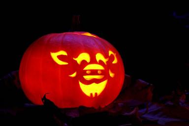 Keywords: dark decoration fall glow glowing halloween illuminated lantern leaves lights orange pumpkin scary season spooky trick