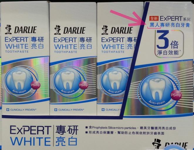 | Keywords: Darlie toothpaste packaging from 2013.jpg Uploaded with en wp UW marker 2013 05 04 Original Chinese brand name is still in use The two indicated Chinese characters directly translate to black person I took this photo of retail packaging of a consumer product 2013-04-27 Glueball cc-zero Cc-zero Uncategorized 2013 May 4 |